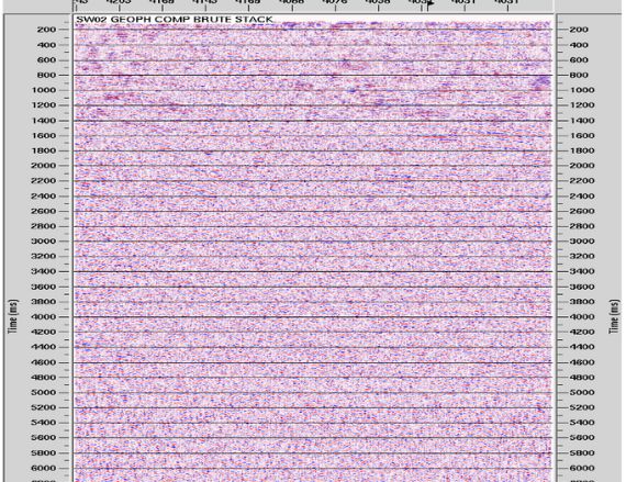 Brute Stack Section of Hydrophone Data from A Shallow Marine 3D x 2C Seismic survey